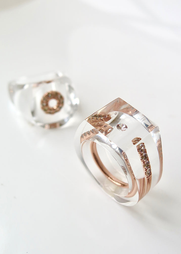 8x0.07ct and 1x0.10ct IJ/SI round brilliant cut diamonds set in resin